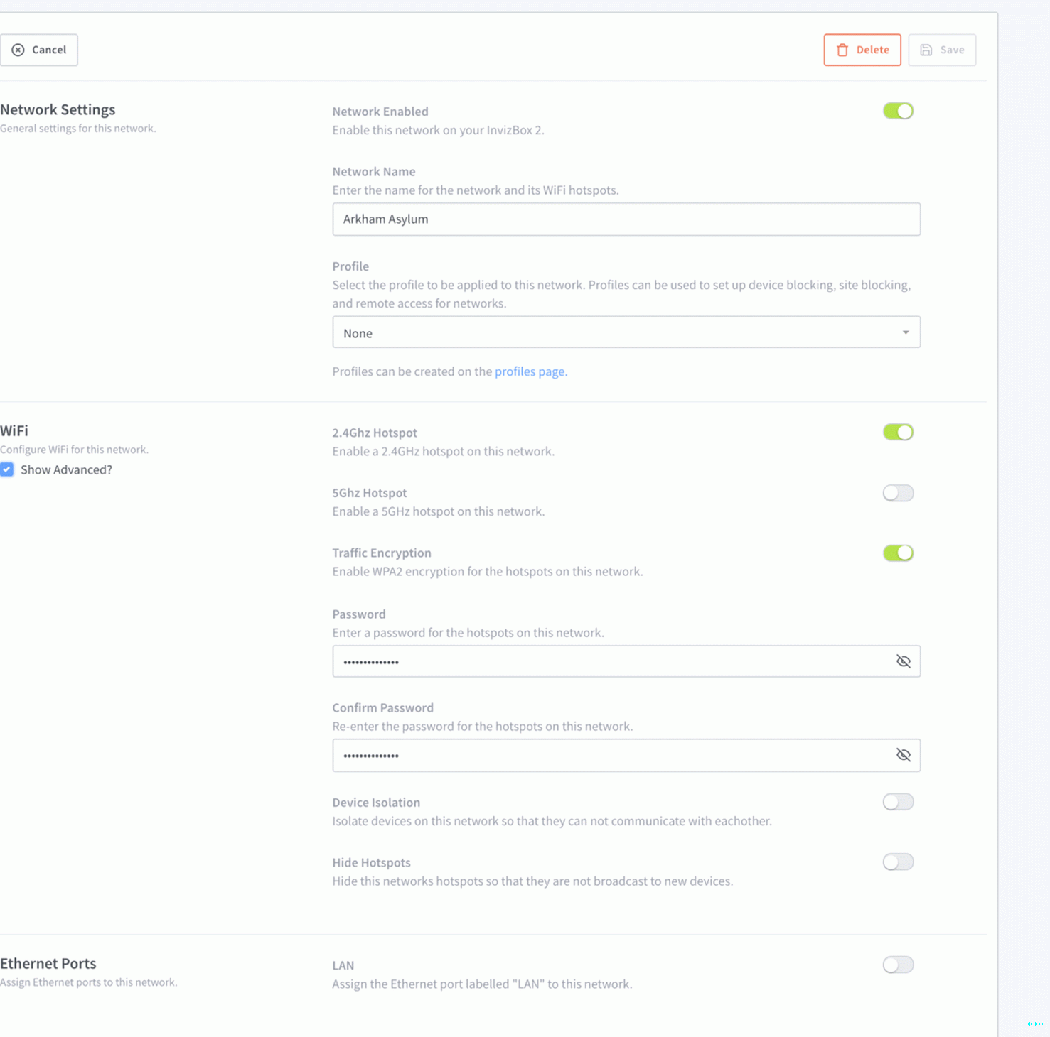 - Una rete Wi-Fi locale senza accesso a Internet, per i dispositivi meglio tenuto in isolamento.
